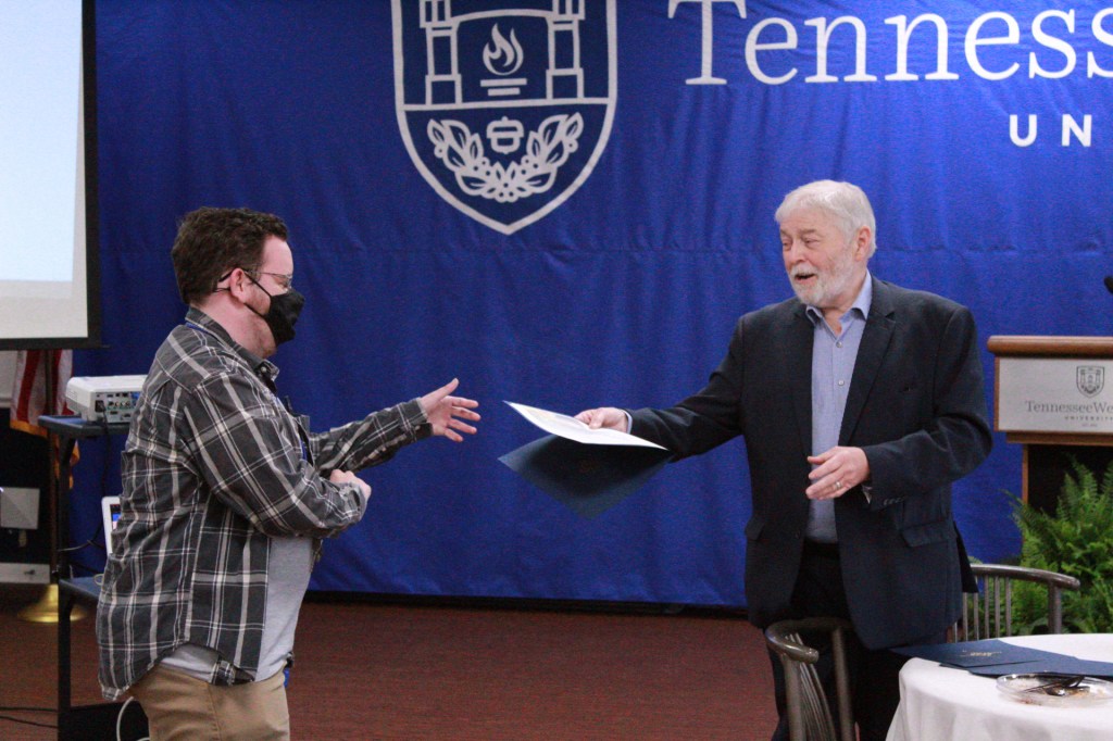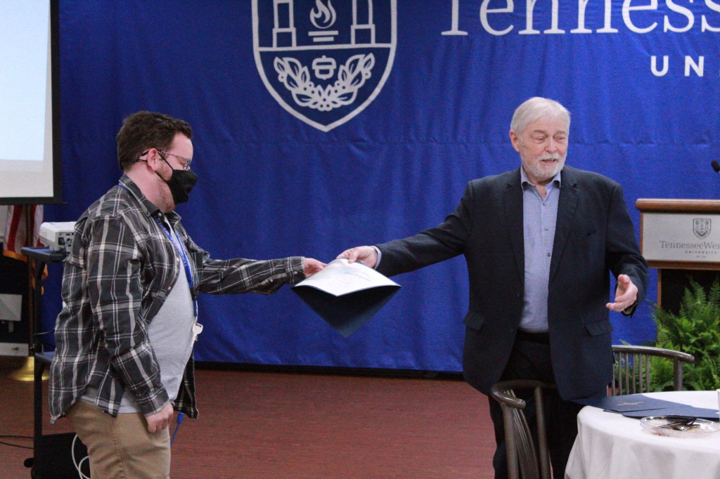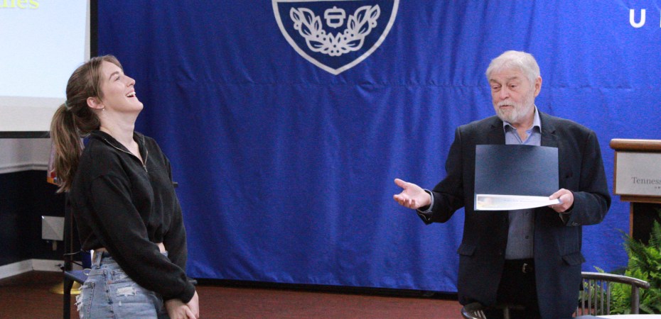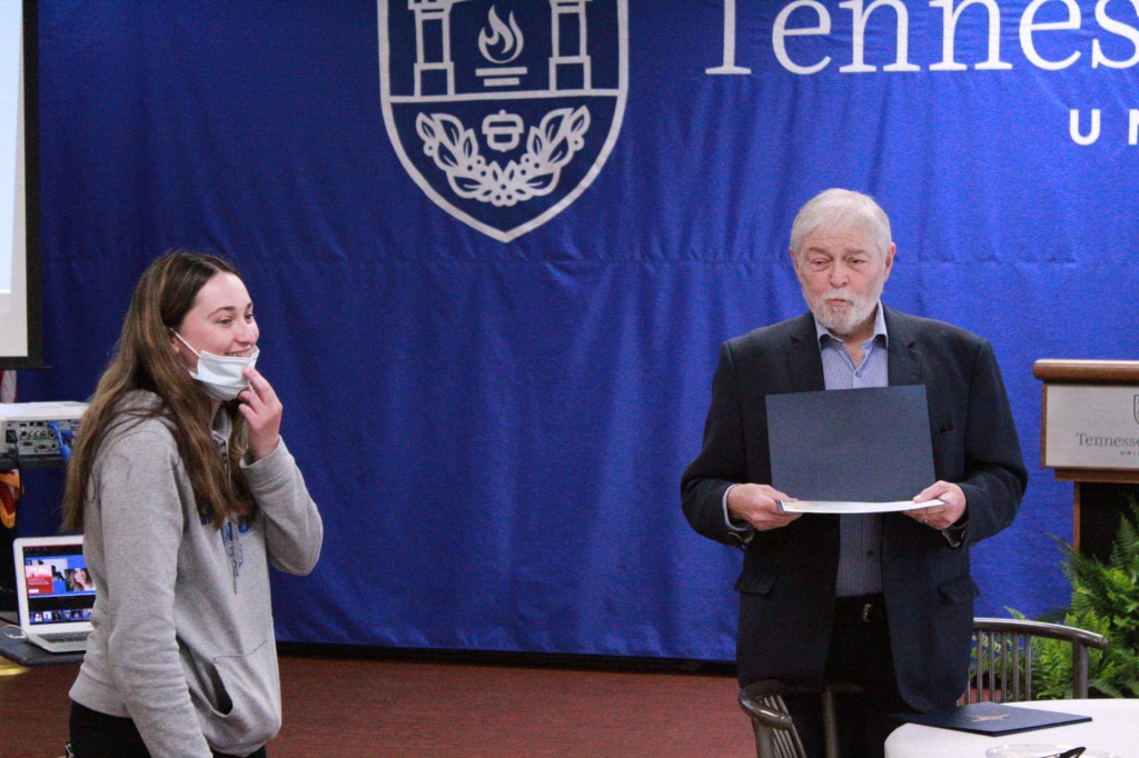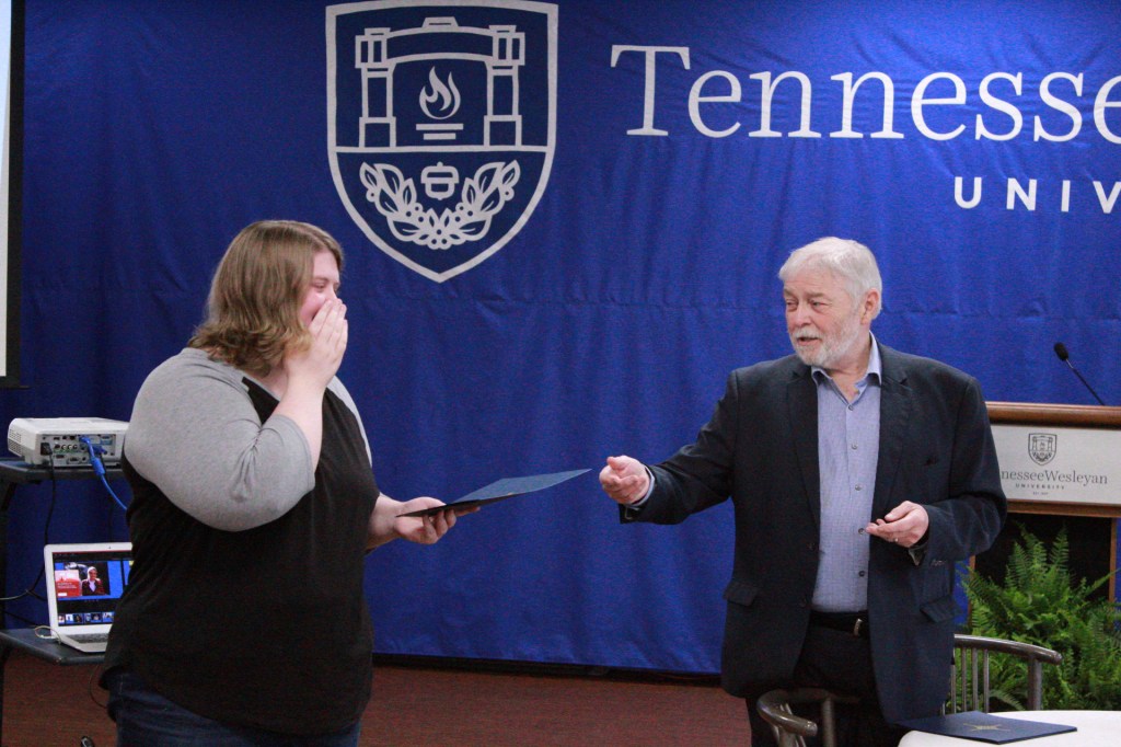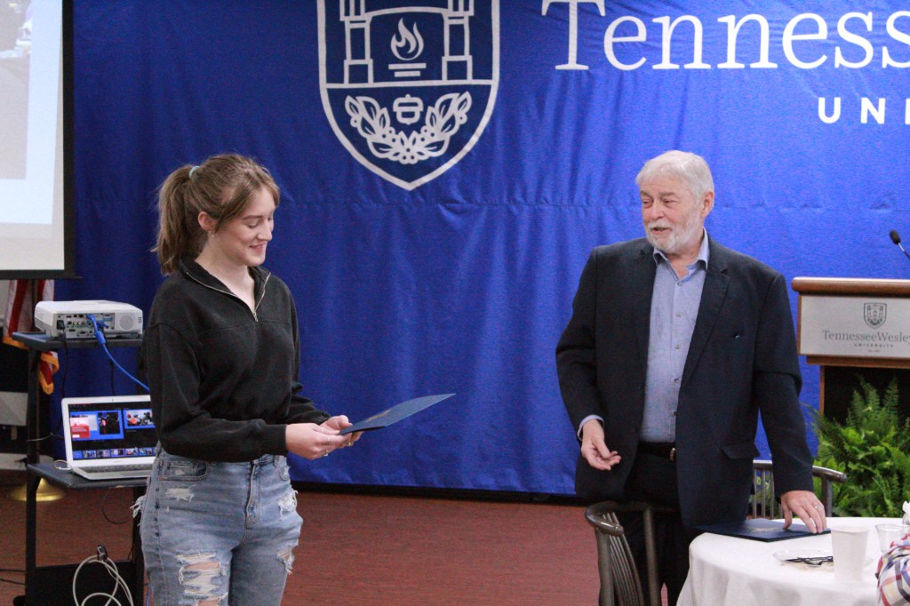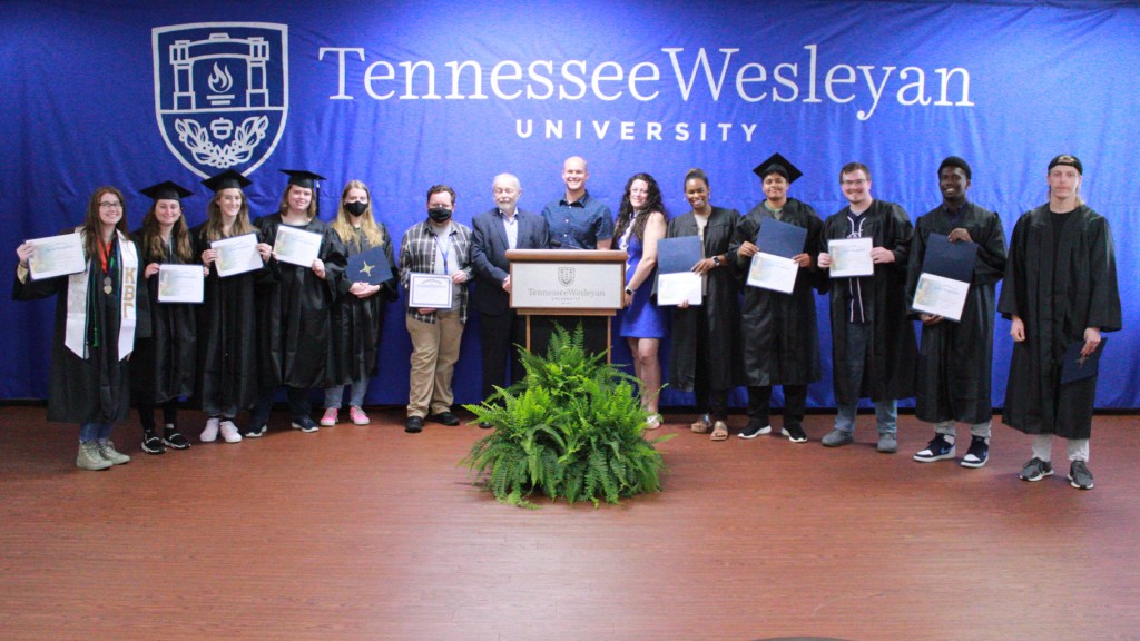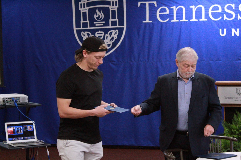 The event began with a speech by Dr. Gilbert who has not been seen on campus for the duration of the semester due to health issues. His speech was a congratulations on the class for the upcoming graduation and a celebration of the growing size of the department. He was followed by J.J. Hulet and Katherine Davis, both fellow professors in the department, who also gave a few words to the students.