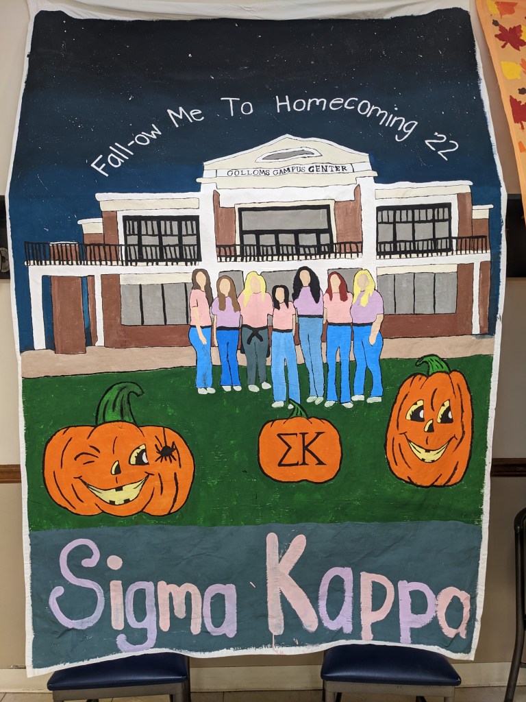 Continuing with this year’s Homecoming theme, Fall-ow Me to Homecoming, organizations this year were challenged to make an Instagram post with that theme, and the posts are judged on creativity. This year’s winner was Sigma Kappa.
