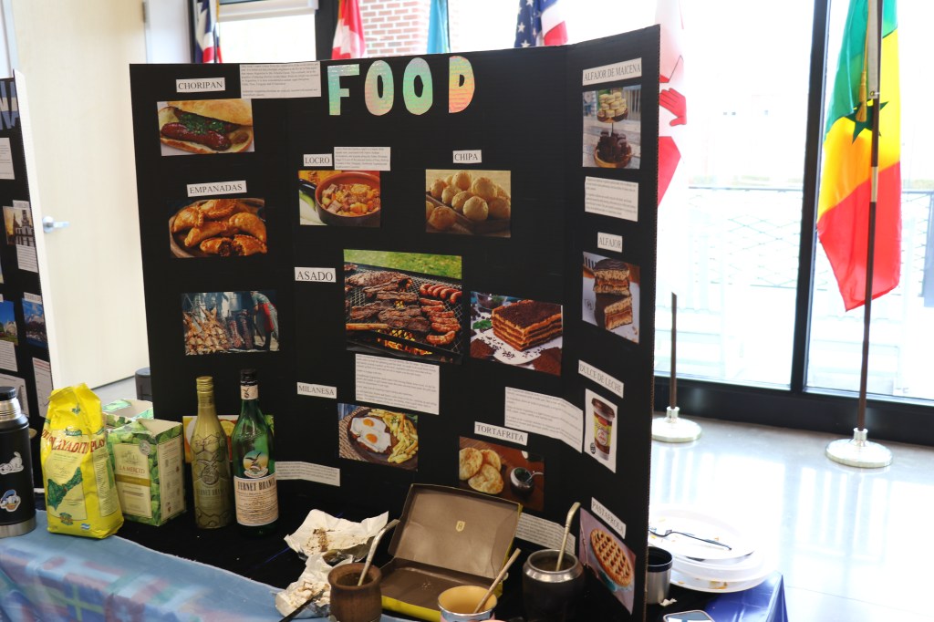 The students got to set up and decorate their own tables with whoever else was representing their country. Although most of the countries represented were done by people from that country, some students represented countries they’re not from for a class. Most students made poster boards, brought food, showed videos, wore clothes from their cultures, and so much more!