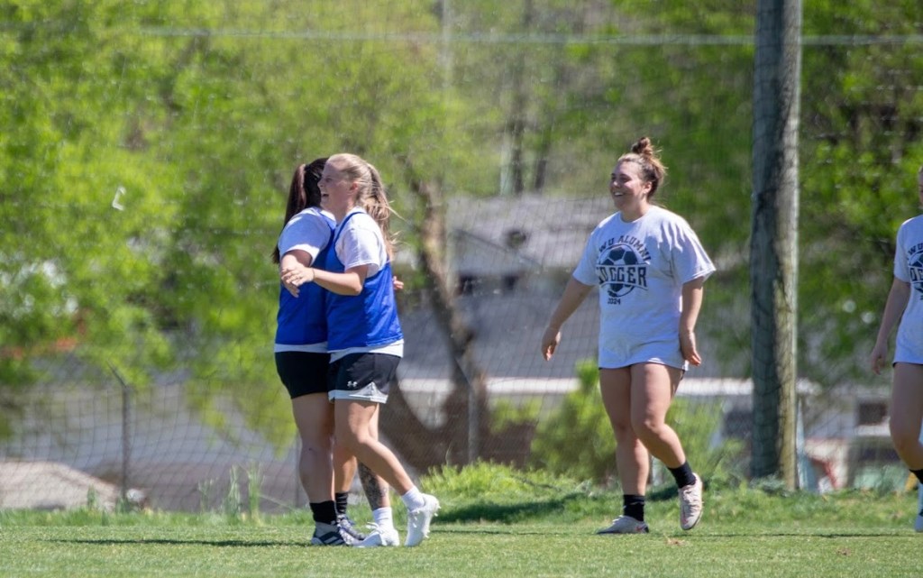 On April 13 ,2024 The Tennessee Wesleyan Women’s Soccer team hosted their annual Alumni Game. The game was held at the McMinn High School field at 2pm. The alumni team wore white and the current soccer team there wore blue. Head coach Bryan Walker was the referee and both teams just coached themselves that day.